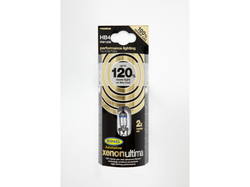 Автолампа XENON ULTIMA +120% в пластиковой упаковке (по 2 шт): 12 вольт, мощность 51W, цоколь HB4 (P22d)