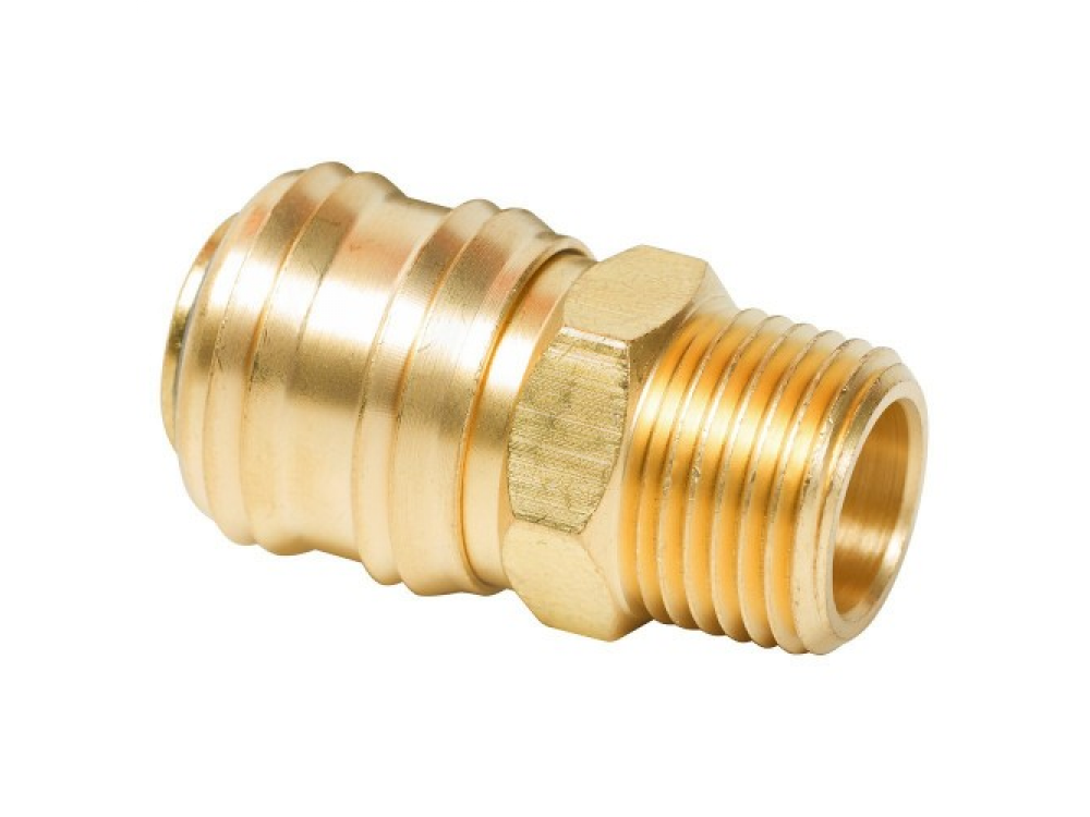 Быстросъемная муфта с размерностью F>M1/2 дюйма Мастак 696-33 с роликами для фиксации, изготовленными из подшипниковой стали, предназначена для соединения шлангов в пневматических линиях по стандарту EURO. Технические характеристики - Размер, дюйм 1/2 - Механизм фиксации: роликовый - Материал корпуса: латунь - Материал роликов: подшипниковая сталь - Размер, дюйм 1/2 - Резьба наружная - Масса, кг 0,09