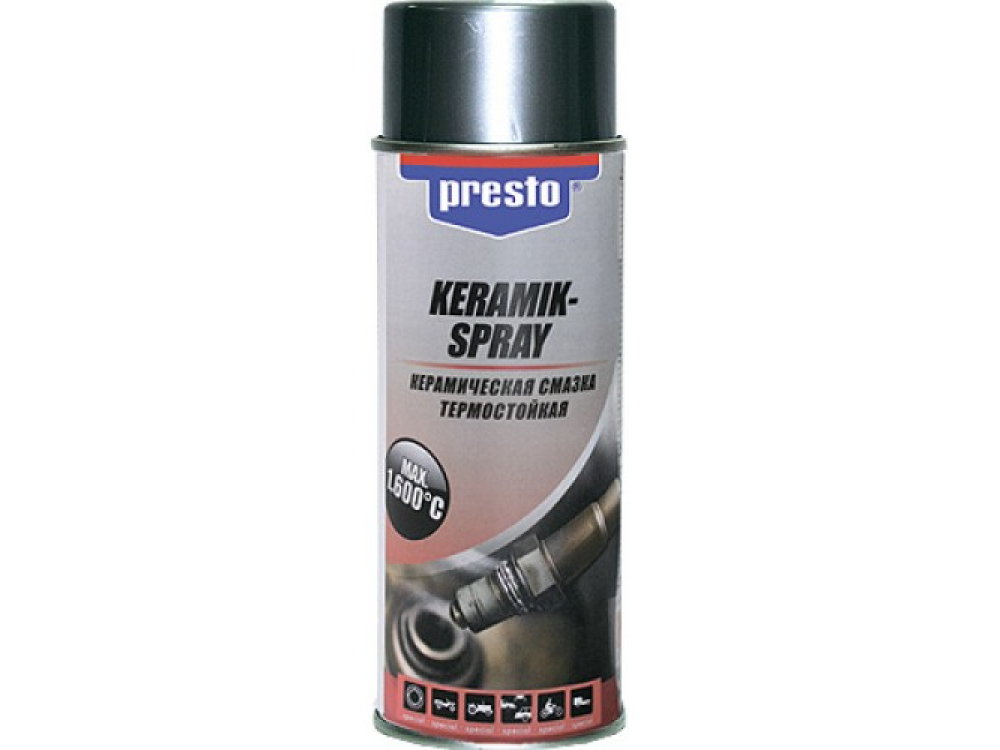 Керамическая высокотемпературная смазка Presto предназначена для деталей, подвергающихся воздействию больших нагрузок или очень высоких температур (от &ndash40 до +1 600º
