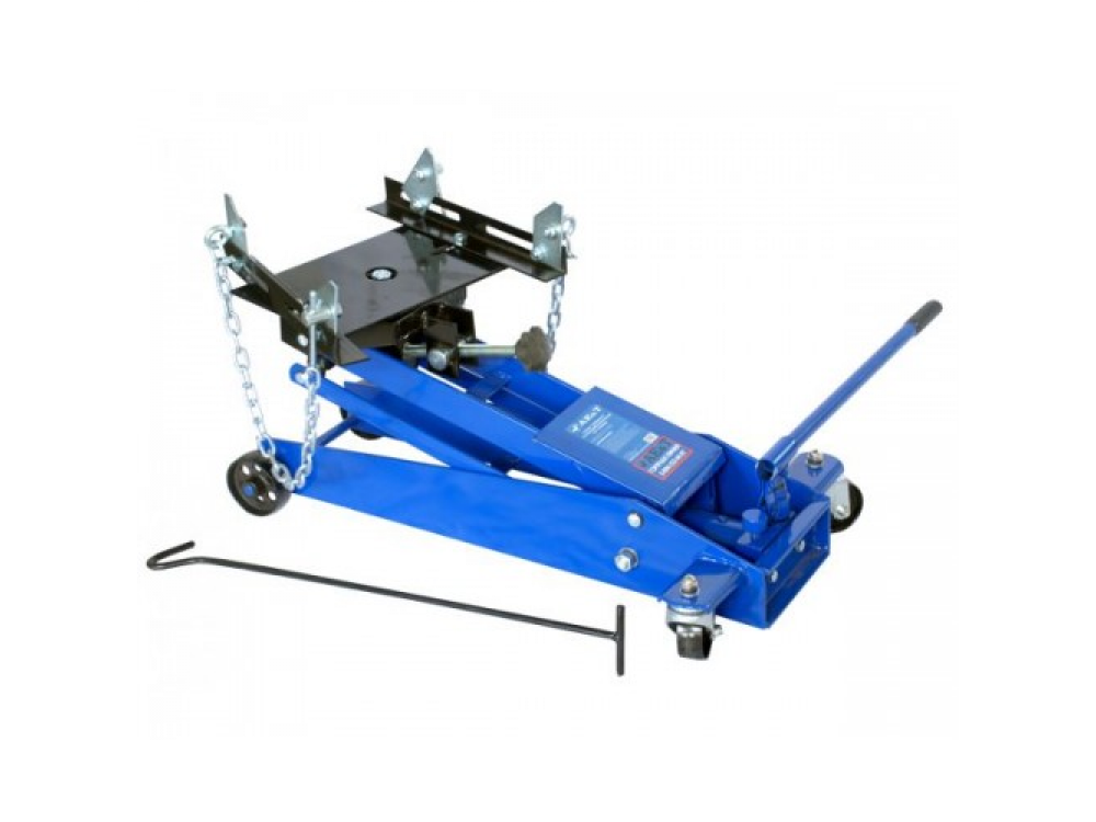 Надежный, простой в использовании гидравлический домкрат с ручным приводом и специальными креплениями для коробки передач или других перемещаемых агрегатов.