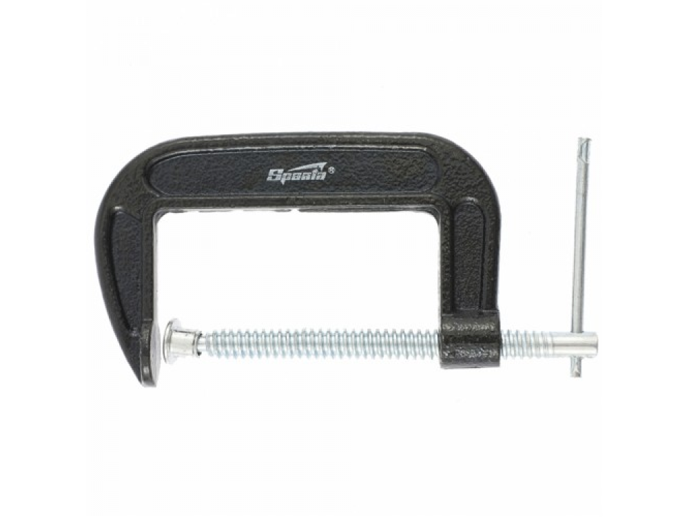 Рама струбцины покрыта цветным лаком. Винт струбцины со специальным зажимом и крупной червячной резьбой позволяет надежно фиксировать предметы.